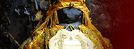 | 样。近年来,信众为其穿装戴帽、缀饰金牌,更能益显「石头公」的 |