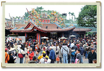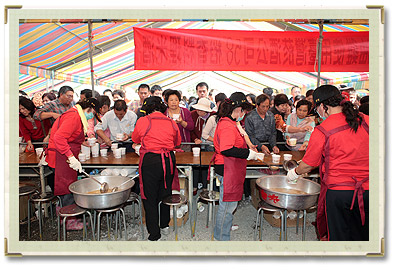 | 春明けの際に南投県竹山社寮の紫南宮では、“土地公伝説、丁酒を |