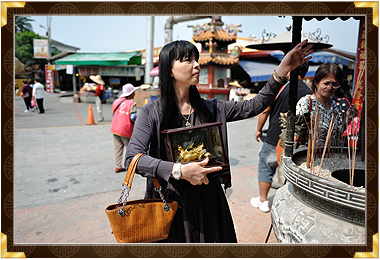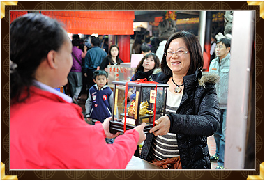 | 擲筊の前には、自分の名前、住所のアドレス、開運金鶏の用途 |