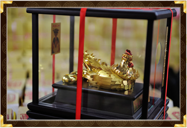 | 四、両手で金鶏を捧げ、気をつけるように家或いは会社に供えて、 |