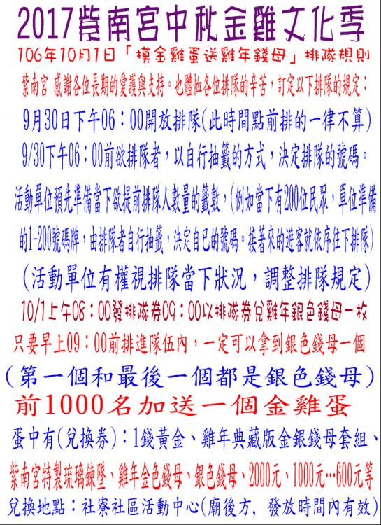2017紫南宮中秋金雞文化季-錢母回娘家活動--