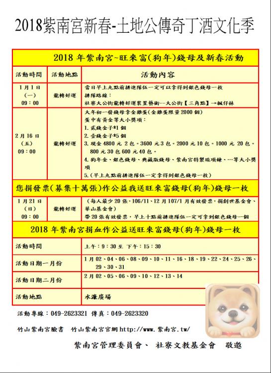 2018紫南宮-旺來富(狗年)錢母新春活動