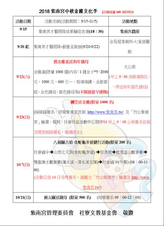 2018紫南宮中秋金雞文化季