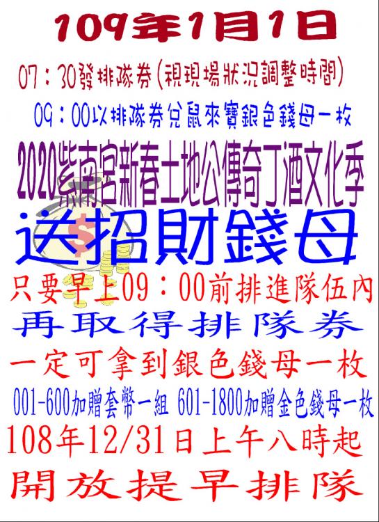 2020紫南宮招財錢母元旦文宣