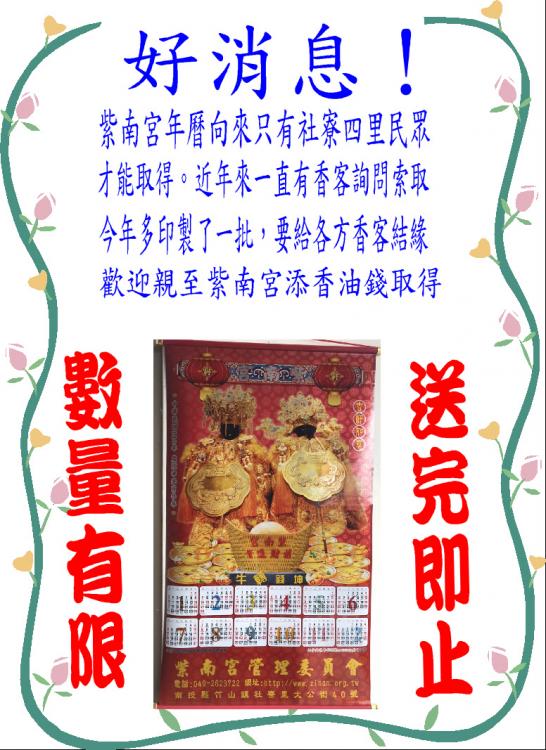 紫南宮年曆結緣公告