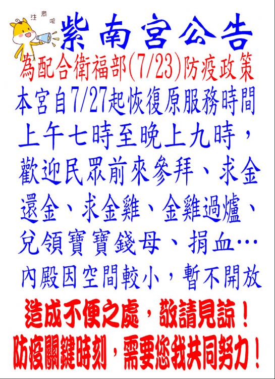 恢復服務時段公告