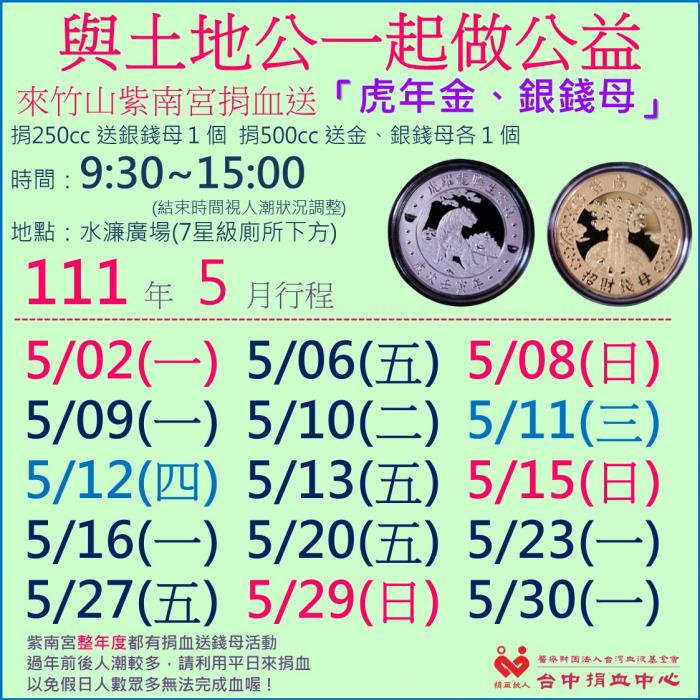 捐血中心5月份訊息