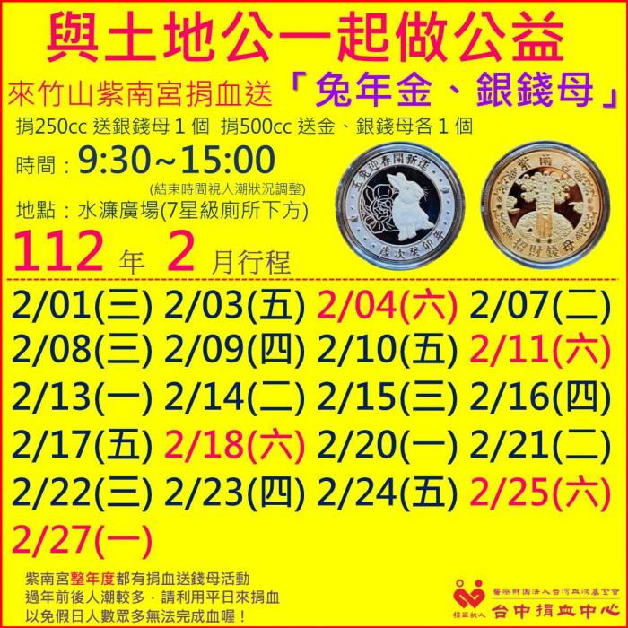 112年2月份捐血訊息