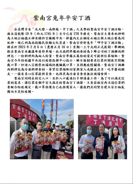 112年農曆正月十六日「呷丁酒」活動訊息: