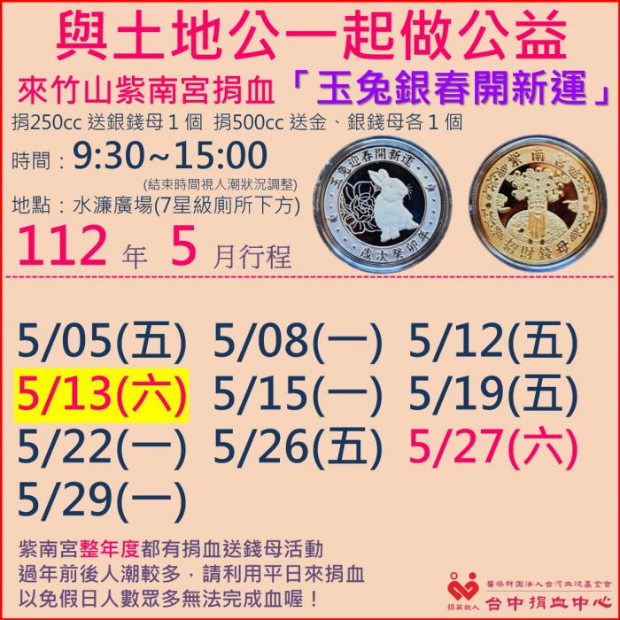 捐血中心5月份行程
