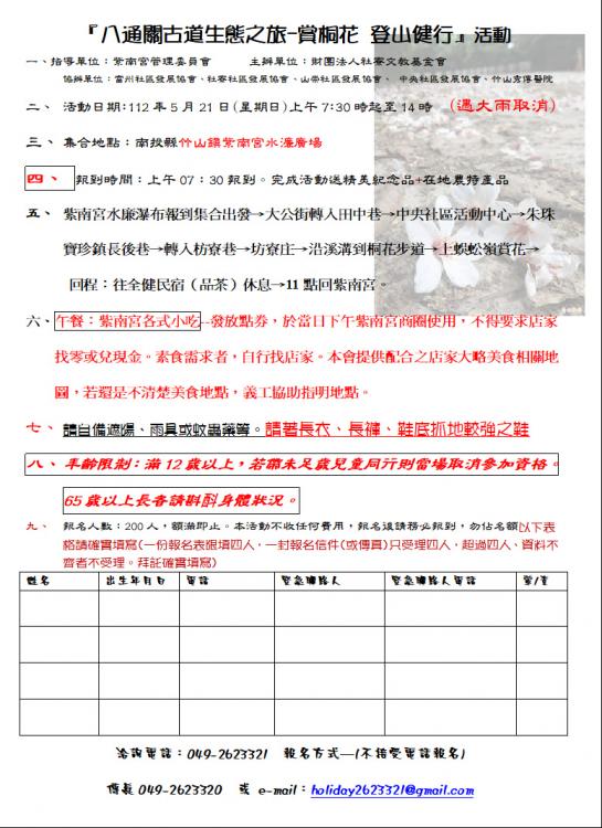 112年5月21日八通關古道社寮段登山健行訊息:原5月7日報名參加者,此次若要參加,一樣要重新報名喔。