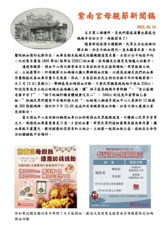 捐血中心5月份訊息