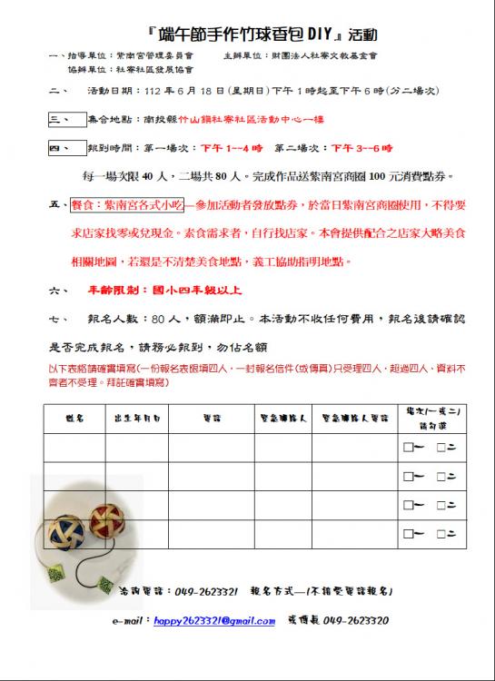 端午佩戴香包,是一種民俗,在古代卻是一種預防瘟疫的方法。結合在地文化,帶您做個不一樣的「竹香包」,名額有限,額滿即止。