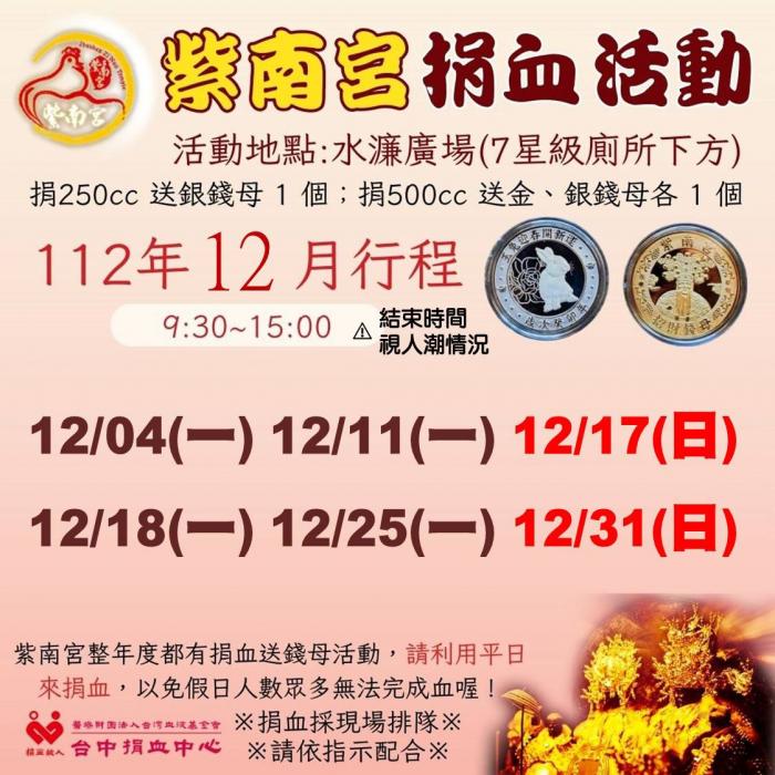 捐血中心12月份訊息