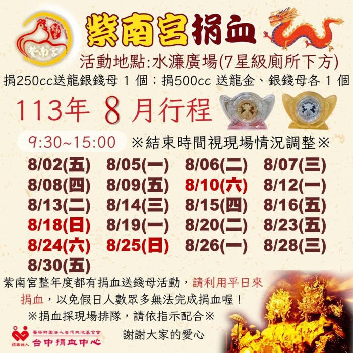 捐血中心八月份行程