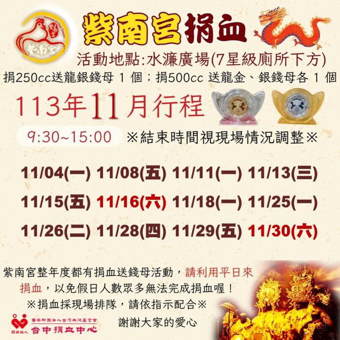 捐血中心11月份行程