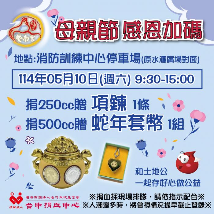 捐血中心114年母親節加碼送蛇年錢母活動