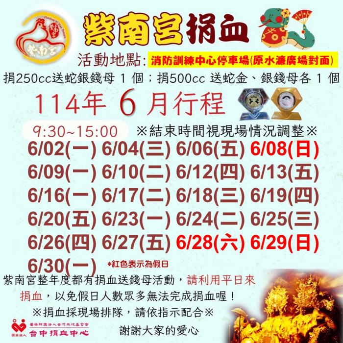 捐血中心六月份行程