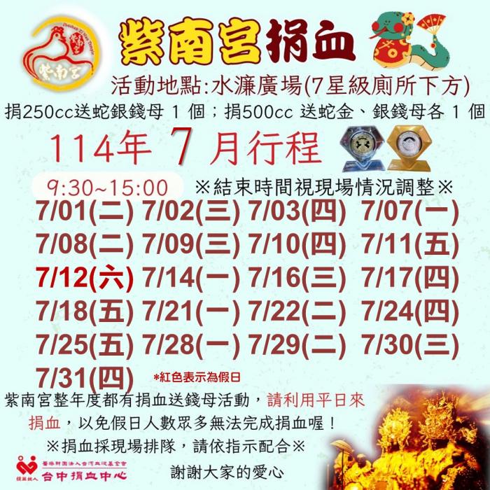 捐血中心7月份行程