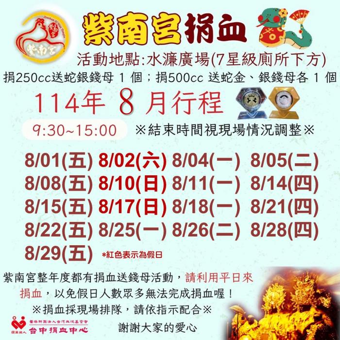 捐血中心八月份行程表