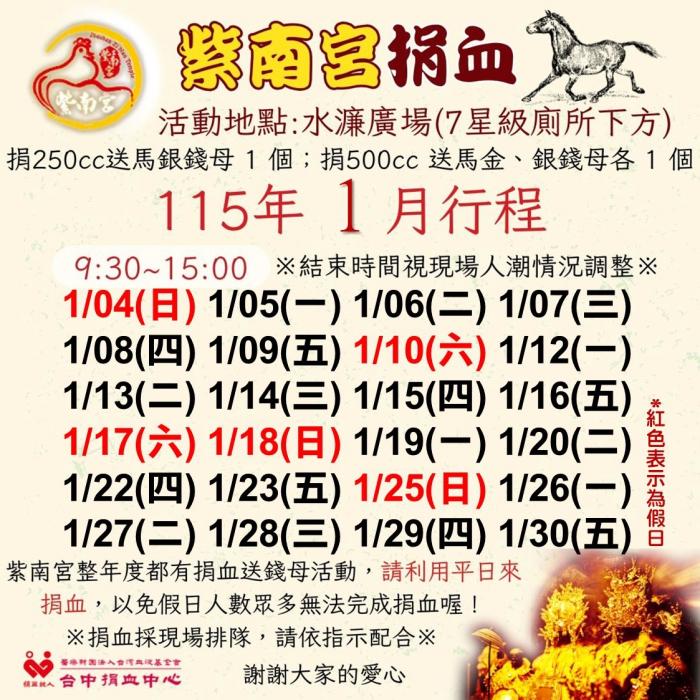 115年元月份捐血日程表出爐囉!