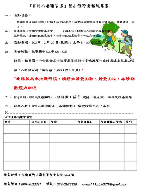 年度最後一場健行活動開始報名囉