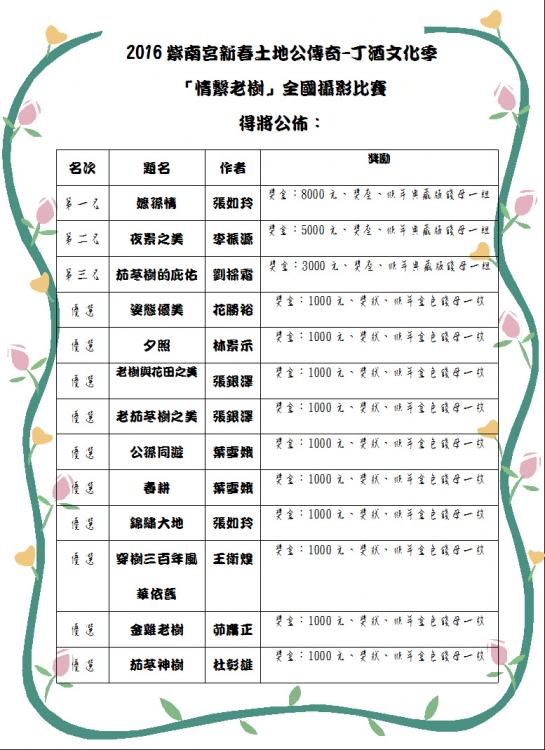 情繫老樹得公名單公佈