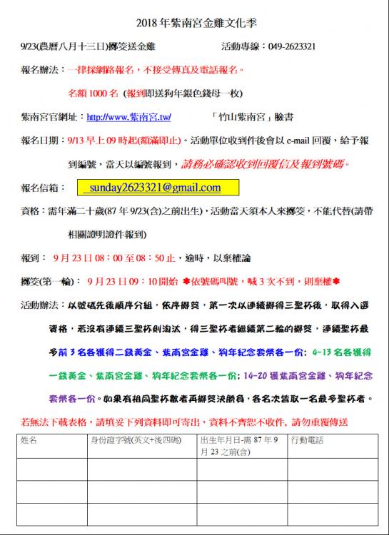 2018紫南宮中秋金雞文化季-擲筊送金雞報名訊息