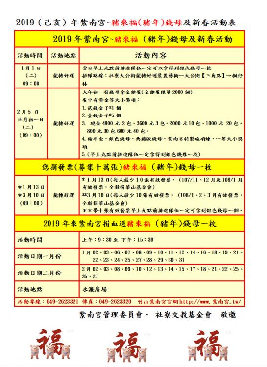 2019紫南宮新春丁酒文化季活動節目表